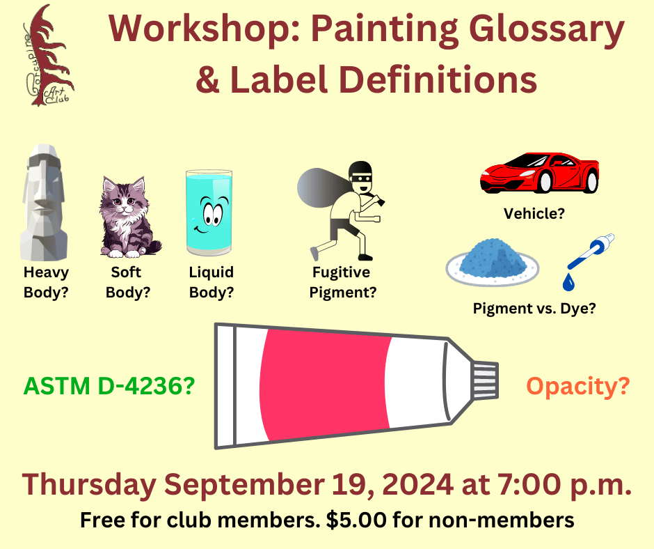 Join us for our first Thursday evening workshop of the year: Painting Glossary & Label Definitions with Karina Douglas-Takayesu.
