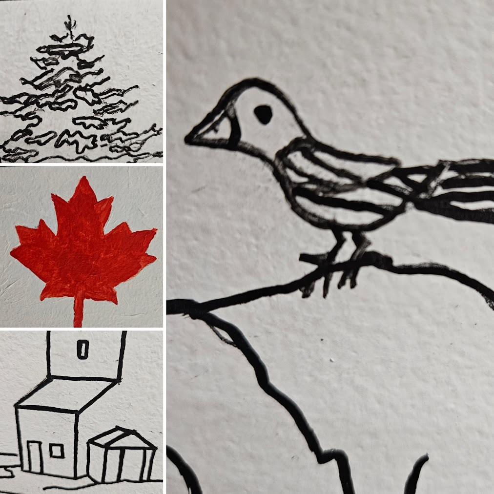 Join the Porcupine Art Club at the The City of Timmins‘ Canada Day Festivities in Hollinger Park on Tuesday July 1st, 2025, starting at 12:00 Noon. We have prepared another community mural for you to paint! There are 50 small (5″ X 5″) drawings, which feature various flowers, animals, and scenes that represent Canada’s 10 provinces and 3 territories.